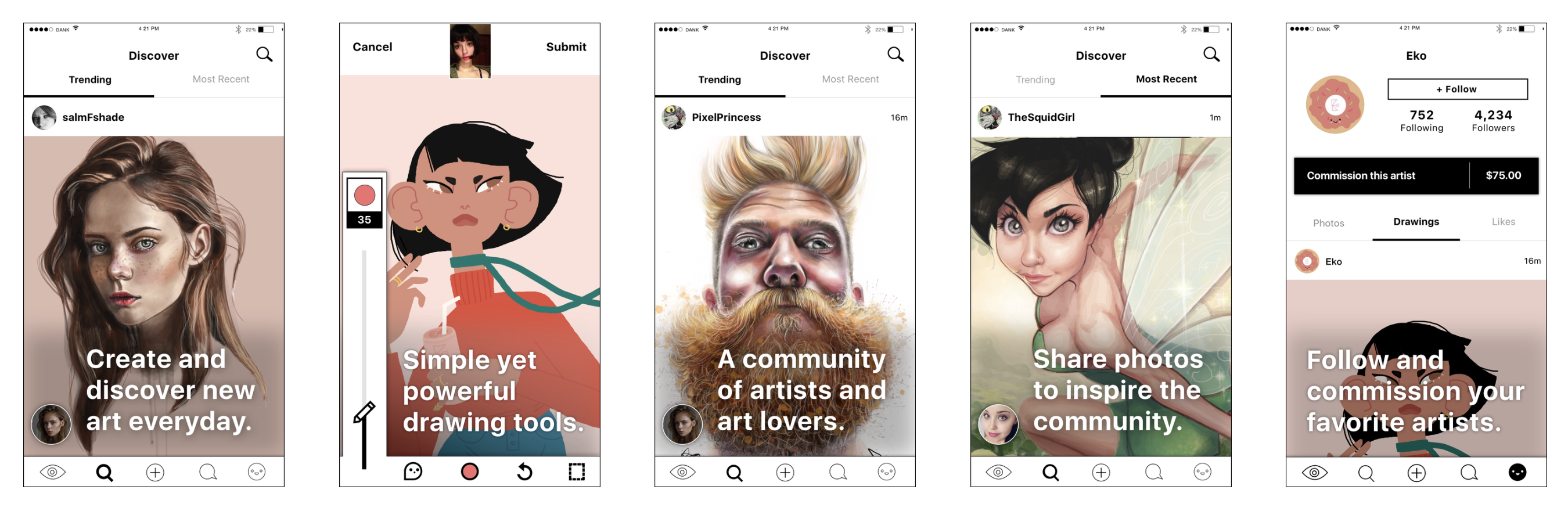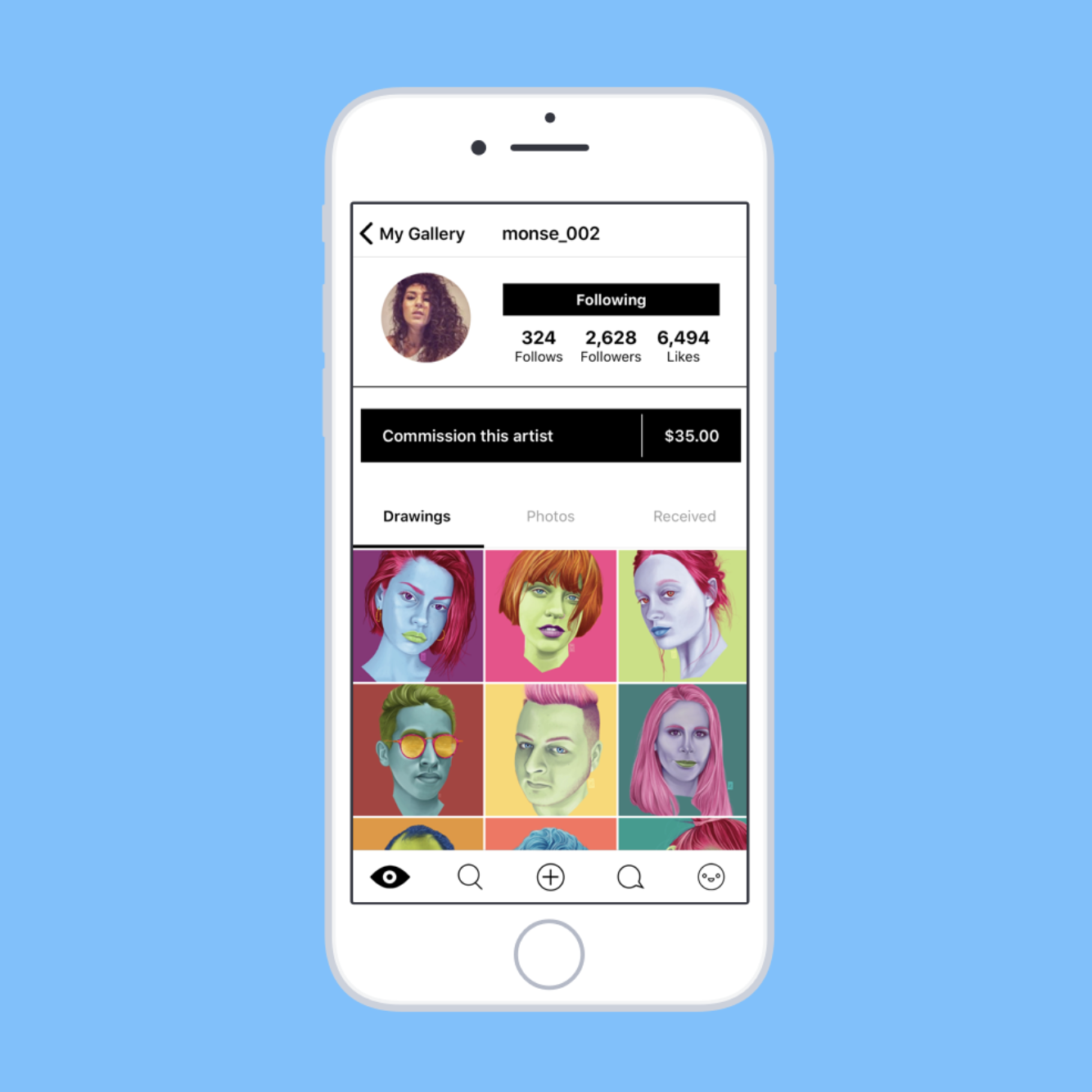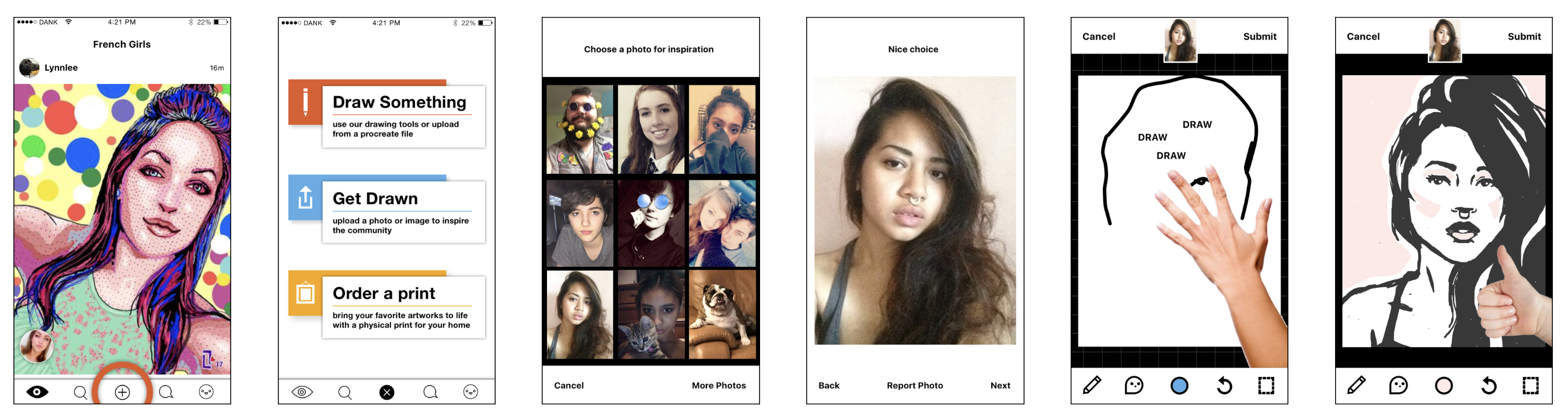 I redesigned the mobile experience to make browsing and drawing smoother and more fun. We introduced artist profiles, galleries, and featured feeds that showcased great work and rewarded active creators. We also experimented with monetization — commissioning, physical prints, and even a “learn to draw” curriculum that taught beginners using a grid-based method I designed. The result was a product that still felt spontaneous and funny, but had a clearer backbone and real creative purpose.