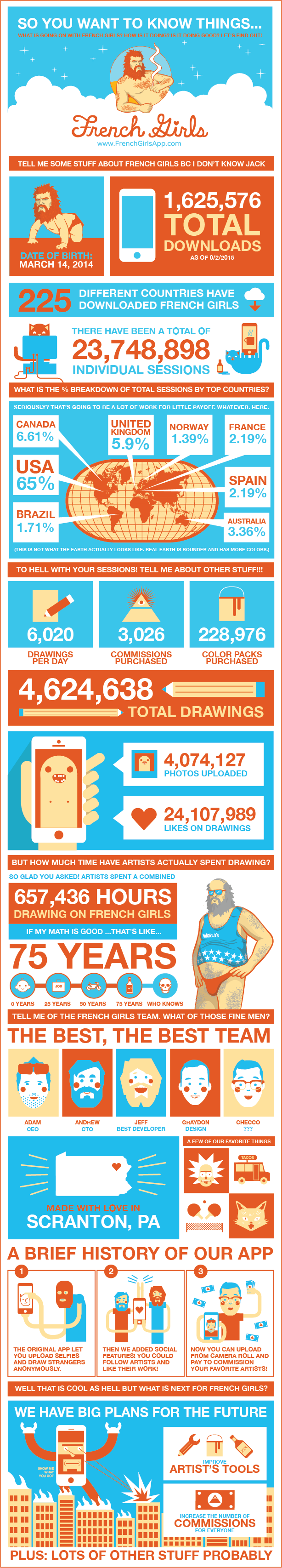 French Girls reached over 2.5 million downloads, was featured on Comedy Central’s @Midnight, topped Reddit twice, and was covered by dozens of blogs. It became a cultural moment — a mix of humor, art, and community that burned bright for a few years before fading out. Even after we shut down, the artists kept in touch. Many still say it was one of the most fun creative platforms they’ve been part of.