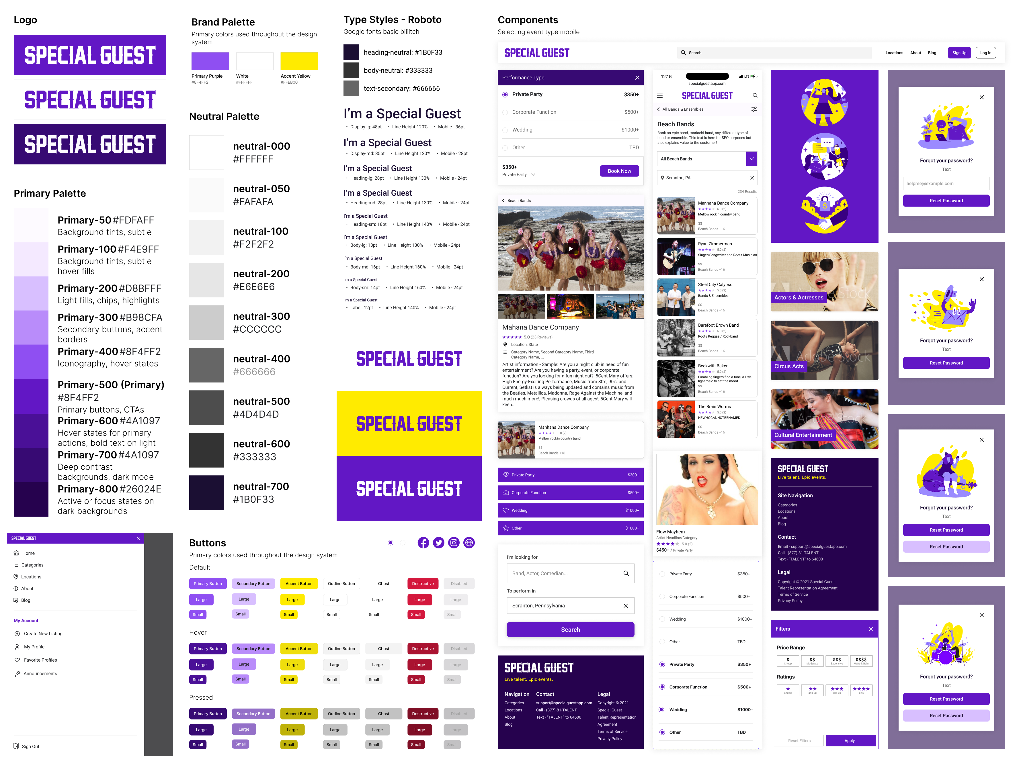 Foundational elements for the Special Guest design system — bridging marketing and product through consistent visual language.