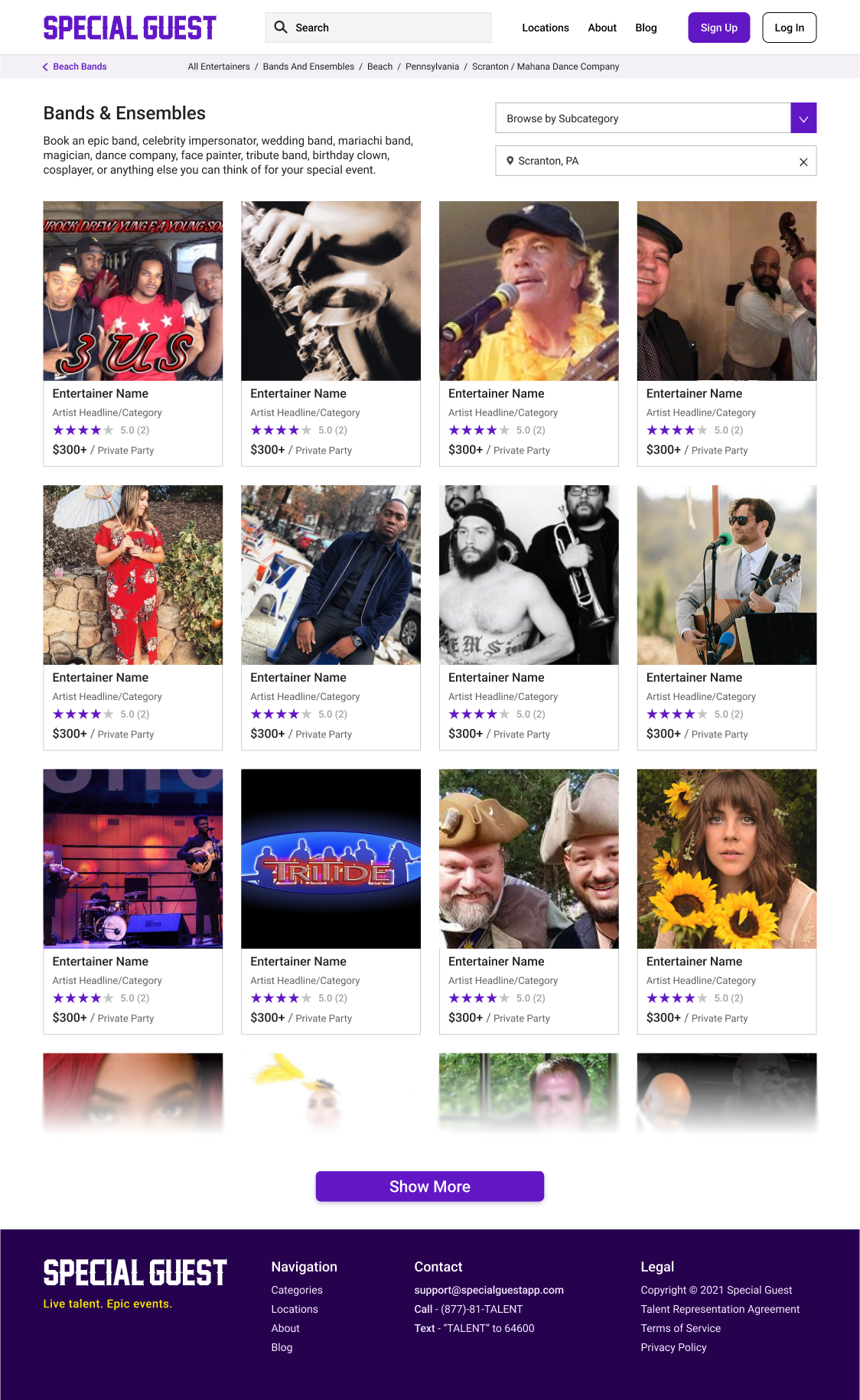 The redesign gave Special Guest a professional, cohesive identity and restored user confidence after the pandemic shutdown. By aligning the product’s visual language and UX patterns, we made it easier for both performers and event organizers to browse, compare, and book talent—especially on mobile. The new design system unified the brand across platforms and allowed engineering to ship faster with fewer visual inconsistencies.